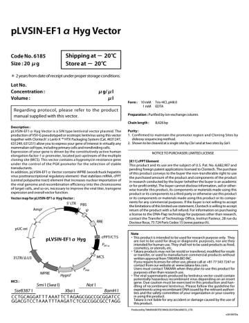 Takara 3224 pBAsi-hU6 Pur DNA. BMC research notes 51 1. RV I SV40 polyA Description.